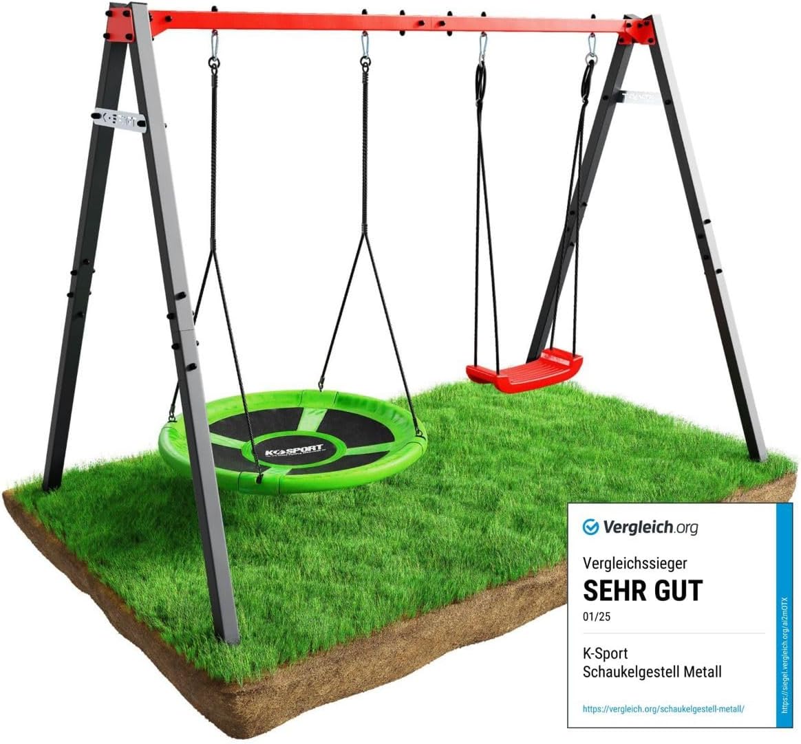 Structure robuste avec deux balançoires, idéale pour les enfants. Conception stable et résistante pour des moments de jeu en plein air en toute sécurité.